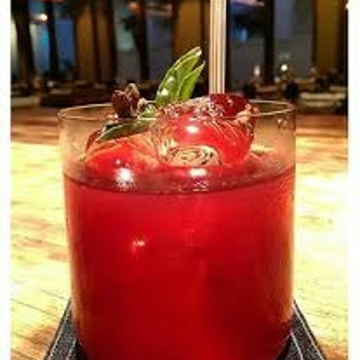 Cocktail contemporain, fait au shaker, et servi dans un verre de type tumbler avec de la glace.